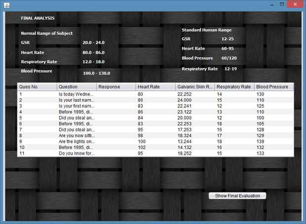 4. preguntas que el sospechoso, su respuestas, lecturas del sensor fueron capturados en la base de datos de sql oracle.