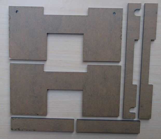 Usando los archivos de diseño que se adjunta a continuación, cortar las partes de su material, el tipo de material a utilizar se da en el título del archivo. Si no tienes acceso a un cortador del laser, puede enviar los archivos a cualquier servicio de corte láser (usamos chip). Estos servicios también llevan la mayor parte del material que necesita con la excepción de solacryl. Usted también puede comprar un kit de nuestra tienda online (Rodeo de IO , Cat #IMG-01) por $93. El kit contiene todos lo láser cortar piezas y hardware, alambre de platino (en vez de alambre de acero inoxidable) y premontado peines. Usted todavía tendrá que comprar el soldar con autógena-en.