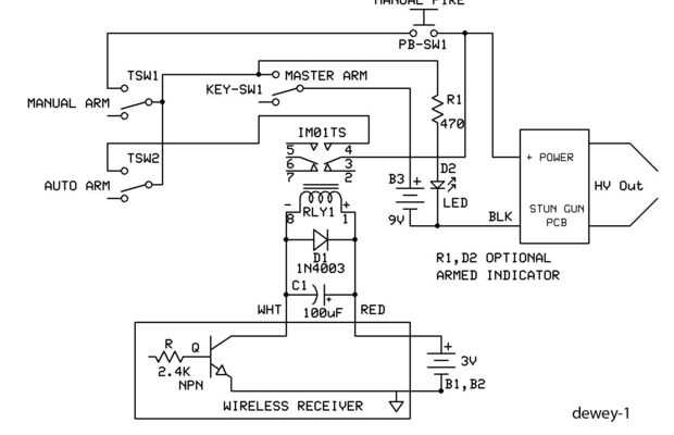 Esto es una simple guía práctica en la fabricación de un encendido remoto/wireless barato para una pistola de Copa u otra aplicación. Utiliza un circuito de timbre para transmitir una señal de RF para activar un relé que completa un circuito de 9V atonte el arma, encenderla. Puede hacerse por menos de $20.