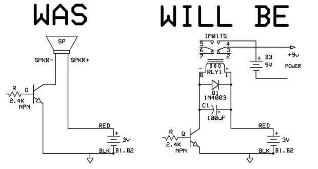 A continuación, debemos determinar que relé que necesitamos. El relé es un interruptor accionado eléctricamente, cuando se envía una señal de potencia baja a un relé, se cierra un interruptor y permite que la señal llevar a cabo con el resto del circuito. En este caso, el relé va completando el circuito de una stungun. Cuando una 9V se unen a su circuito de stungun, debe provocar continuamente pero si ponemos un relé entre el terminal positivo de 9V y el terminal positivo de stungun, lo stungun no chispas hasta que se ha activado el relé.