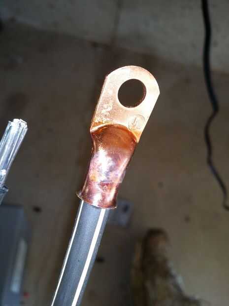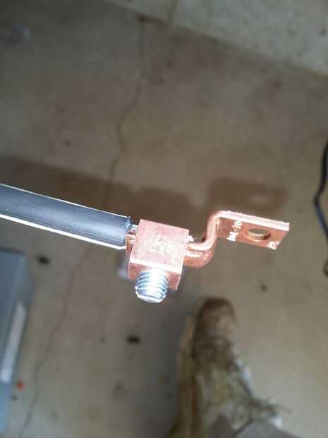 - Después de sus puentes una abrazadera doble color y el alambre terminal una abrazadera/lug con cinta aislante roja para indicar +