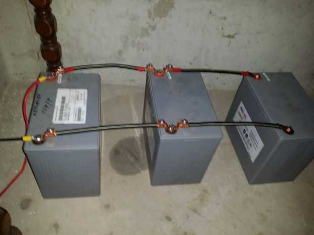 Las baterías están siendo conectadas en paralelo. Cada positivo se conectarán entre sí positiva mediante hilos puente. Lo mismo ocurre con la pata negativa. La diferencia entre paralelo y serie. Capacidad de aumentos paralelos, mientras aumenta tensión de serie. Había conectáramos en serie tiene un banco de baterías de 36V y probablemente con algunas tostadas electrónica.