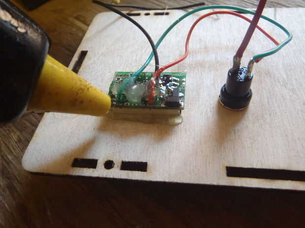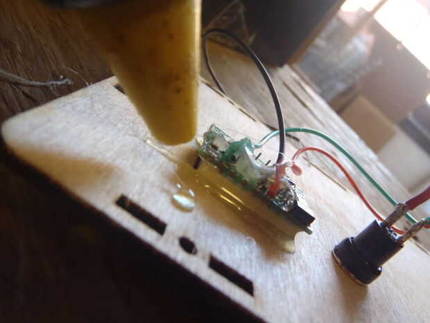 La parte sólo un poco molesta es usando una pistola de pegamento para fijar el voltímetro LED. Alguna idea para hacer a este beeter sería mucho apreció.