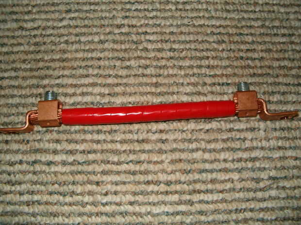 Nota: Asegúrese de tamaño sus puentes para su sistema. Si desea utilizar un inversor de más grande necesitará uso de cable más grande. 1200 vatios / 12 voltios = 100 amperios. Dependiendo de donde mires, cable AWG 2 es bueno para unos 100 amperios. Si desea ejecutar decir, un inversor de 2400 vatios, debe usar 2 cables por puente.