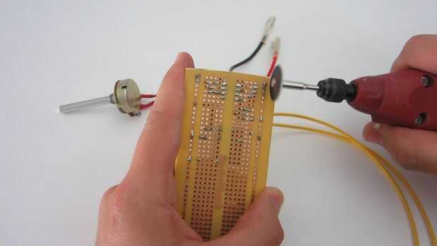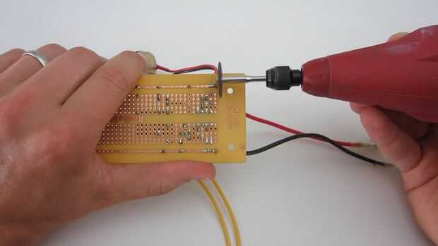 Usé una dremel con un disco de corte para recortar los lados de la tarjeta de circuitos que podrían caber dentro de la vivienda.