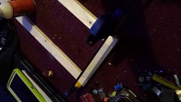 Mis medidas son realmente raros, tu va a ser diferente. mina son 48 1/2" largo 17 7/8 de ancho. Principalmente hay que cruzar lo que quieres hacer, con las medidas de lo que tienes que trabajar con y se reúnen en el centro. Puede utilizar una sierra de calar o de vaivén para cortar estos, pero recuerda que estaba en un presupuesto. Utilicé unas tijeras si he tenido problemas.