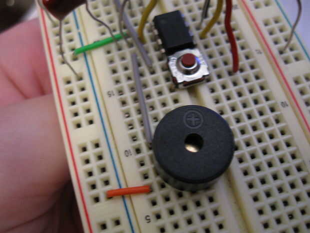 Paso 5. Conecte zumbador piezoeléctrico al pin 3 con un cable puente y los zumbadores a tierra con un cable puente.