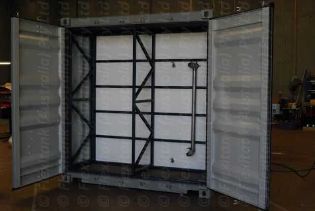 Lo que se propone es un contenedor de protección de incendio y los bosques fuego activo. La idea es instalar un contenedor de 20 pies con vejiga recargable disponible actualmente (http://flexitank.com.au/products/liquid-containment/storagepac-containers/) para dar unos 20.000 litros de agua, con equipo contra incendio en el compartimiento del tabique hermético.