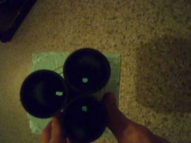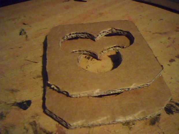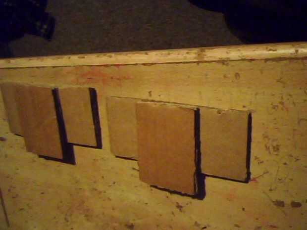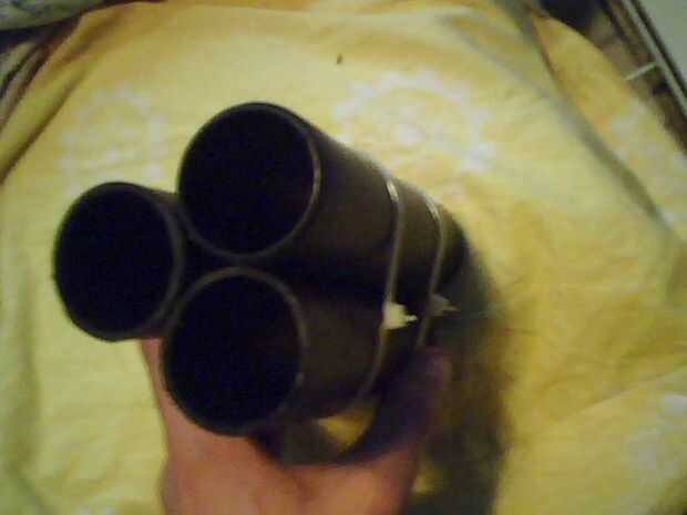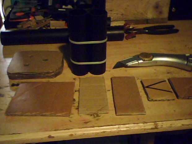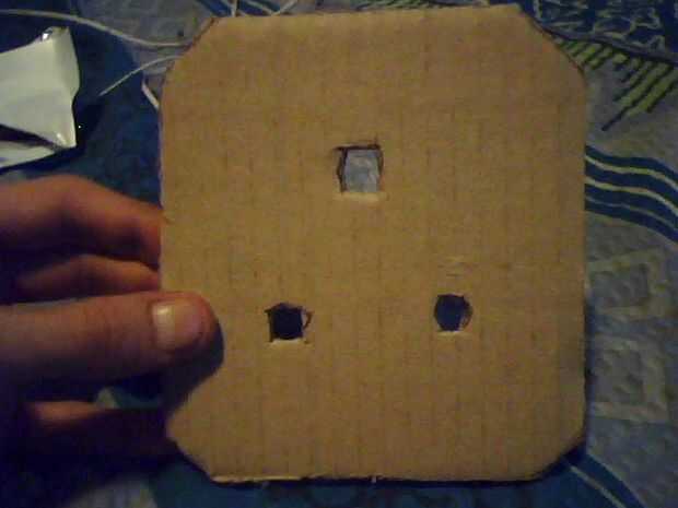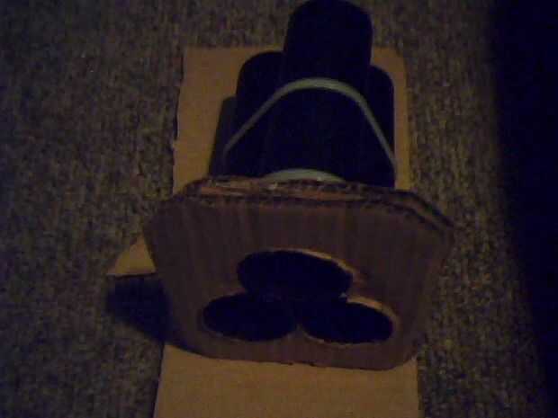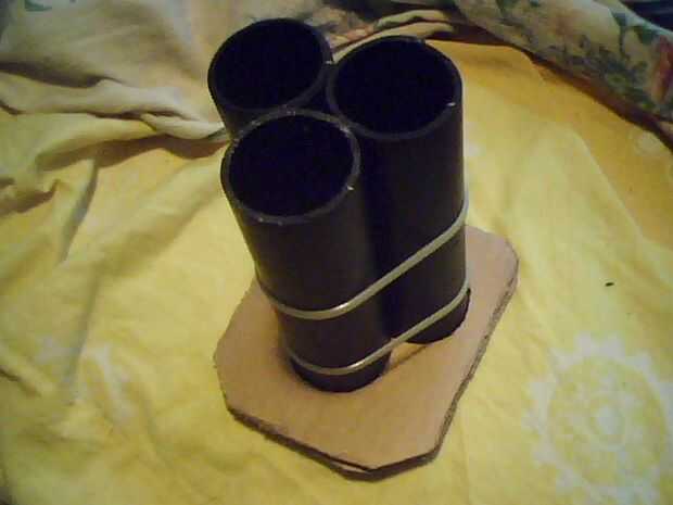 A continuación cortar un cuadrado más grande entonces luego 3barrels y dibujar alrededor de ellas cuidadosamente con un lápiz, recorta la parte se x2 con dos pedazo de tarjeta y caliente pegar firmemente con un montón de pegamento, luego la parte inferior otra vez dibujar alrededor de ella y cortar los agujeros en el centro de cada una de las colocaciones de barril 3 cables mucho más adelante en la construcción , ver fotos.