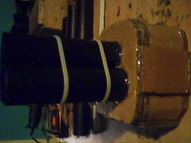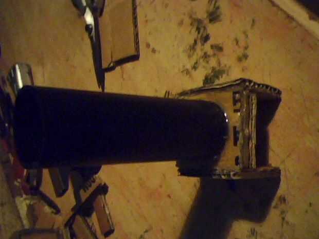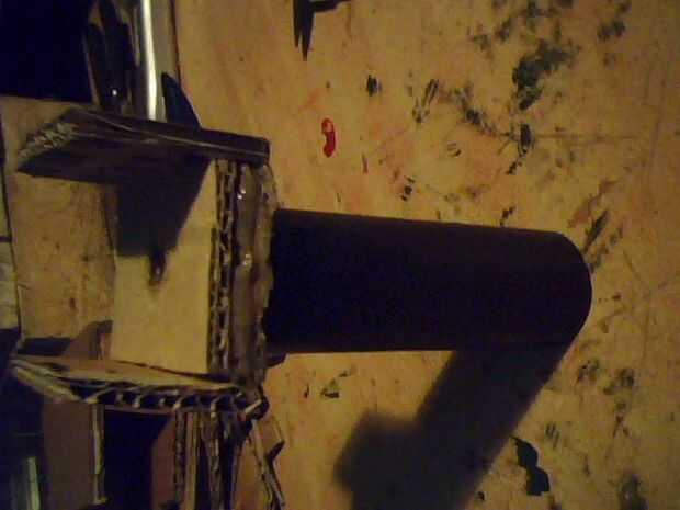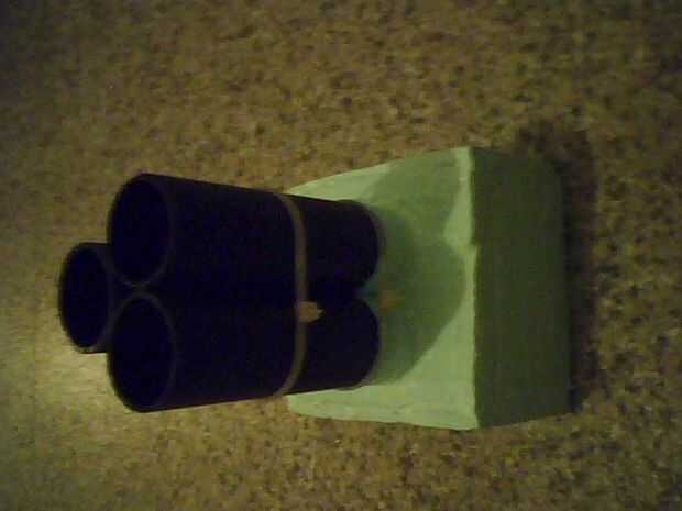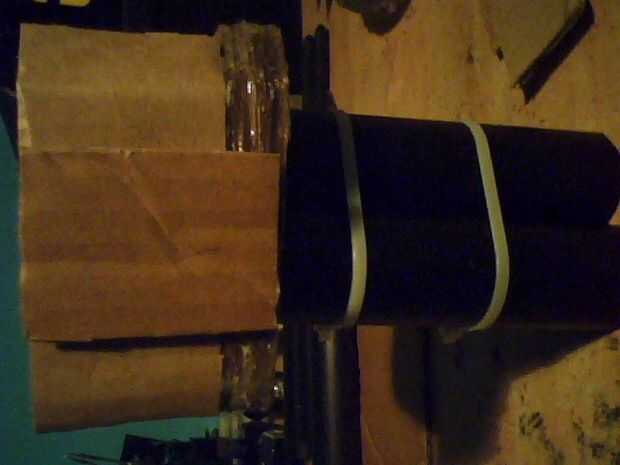 Forman las esquinas y los lados de una tarjeta gruesa y aplicar llaves para conectar la caja a la parte que tiene los cañones en su lugar, continúan de capa y cola tarjeta alrededor dejando una abertura grande en la parte trasera, lado con un barril no dos, esto para colocación de acceso y la electrónica más pesos tal vez para mantenerlo estable ahora pegamento los barriles en el lugar permanente con mucho pegamento , una vez hecho esto, pintados en una capa gruesa de pintura varias veces, luego repite este proceso con la versión de barril solo hacer una caja de pintura hasta que el mismo que el otro, ahora