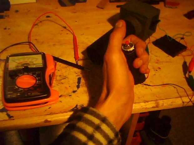 Ahora añadir una batería y un interruptor, usar un detonador en otro instructivo, pero sólo podría utilizar un interruptor de cualquier tipo por cuenta propia, conecte un multímetro probador de la batería a los cables dentro del barril donde el partido E iremos y pulse el interruptor para ver si registra y tienes poder.