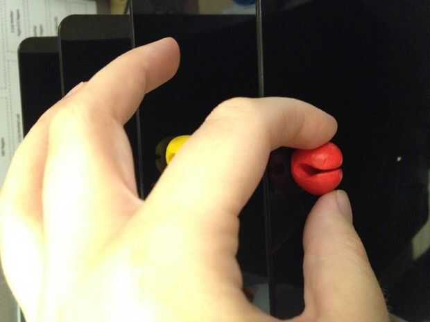 Cuidadosamente pellizque su Sugru para que solamente un poco se separa la parte en rodajas. Cuando esté seco, el Sugru será flexible, por lo que podrás apretar el cable allí y resorte para sujetar firmemente.
