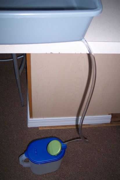Después de que la jarra se vacía o se llena la bandeja, drenar el exceso de solución por aflojar el tubo y colocar en el jarro que ahora han colocado por debajo del nivel de la bandeja para que tu instalación hidropónica puede drenar por gravedad.
