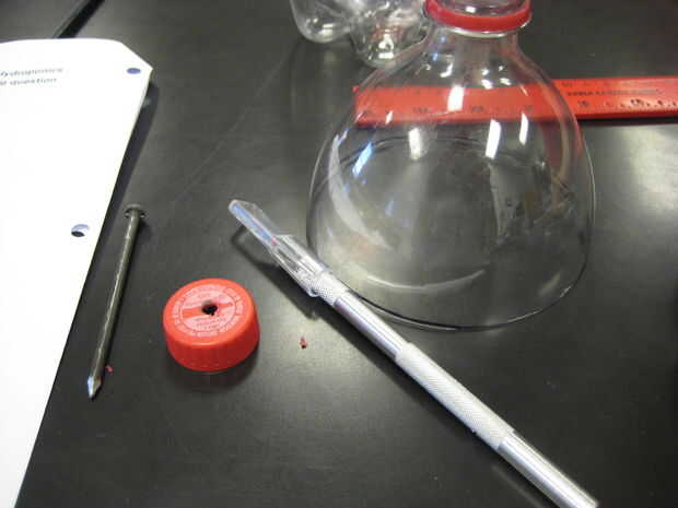 Dejar la tapa en la parte superior de la botella o use un banco de trabajo protegidos para no dañar la mesa.