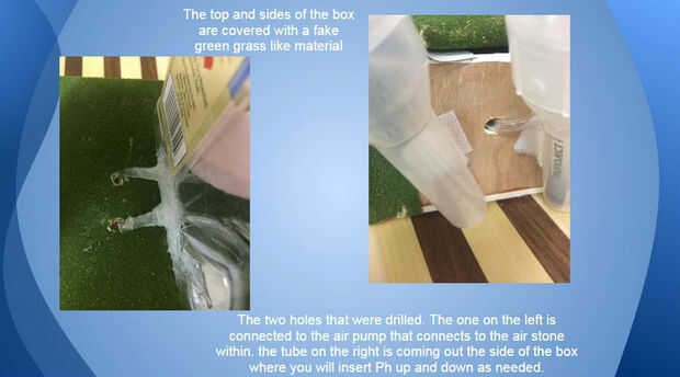 Ahora es hora de conectar un extremo del tubo a la bomba de aire y seguir que mismo tubo y tome el extremo está dentro del envase y conecte el otro extremo a la piedra de aire de tamaño apropiado. El otro tubo que permanece en los restos del tubo esta habían desbloqueado es donde atravesará el ph hacia arriba y hacia abajo. En el extremo opuesto se colocar una válvula unidireccional, esto es donde pueden intercambiarse dependiendo de qué ph están poniendo en las jeringas. Usted puede elegir velcro al lado de la caja con las etiquetas en la parte superior. Última tendrá que sujetar el medidor de ph automático en la parte superior del contenedor.