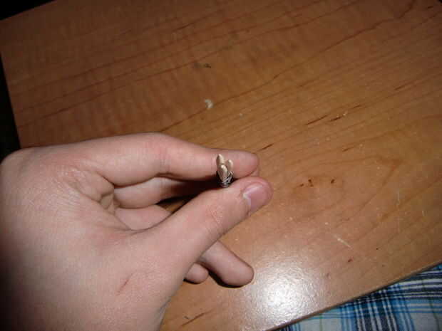 Para construir los lados del soporte para la bomba de humo, sugiero 3 palillos pegadas con cinta adhesiva. Asegúrese de que los tres palillos de dientes son formados en una formación de