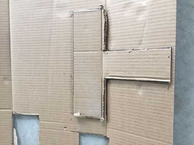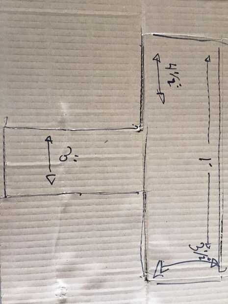 Estamos haciendo aquí una forma de "T". Las dimensiones son indicadas. La pieza de la parte inferior de la "T" es importante para unir a la cuchara, para no cortar.