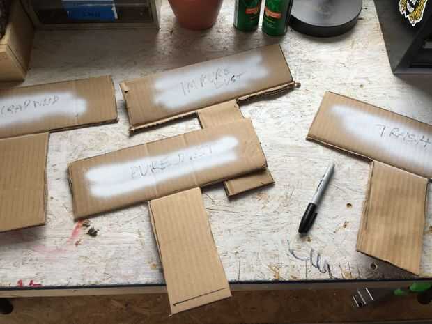 Utiliza un rotulador para escribir en la pintura. Tenga cuidado de no saltar el arma como hice y escriba sobre la pintura antes que se seque.