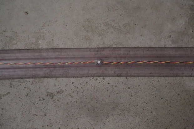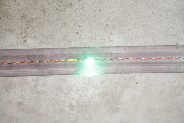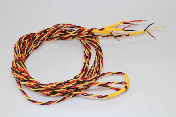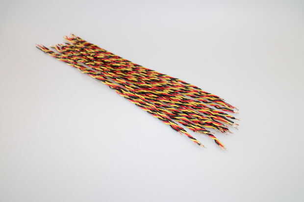 Mida un pie pedazos de alambre rojo, amarillo y negro. Necesitaremos dos veinte de estos conjuntos para extender las tiras de LED.