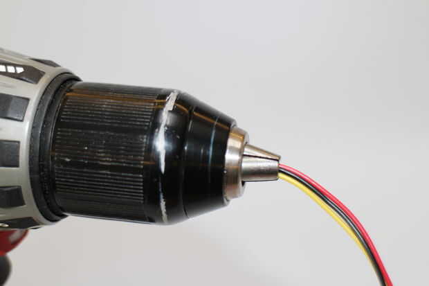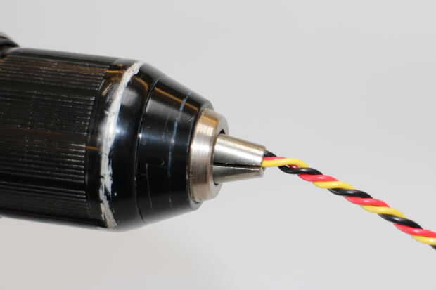 (Nota: un taladro eléctrico hace el trabajo rápido de entrelazar los cables para que queden bonito y recto. Esto es importante para que se deslice fácilmente en el canal en el corredor.)