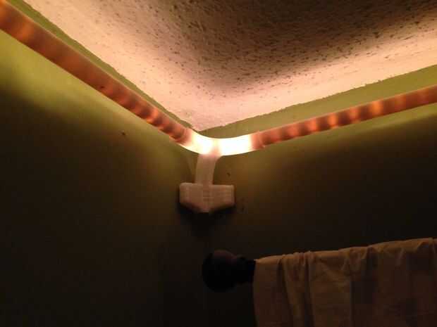 La iluminación de cuerda ahora poder encajen en su lugar empujándola ligeramente en el tubo como usted trabaja su manera alrededor. (Debo mencionar que la habitación tiene una toma de corriente cerca del techo como había conectado a un interruptor para la facilidad de uso. Sin embargo, cada tipo de soporte está diseñado con un canal que permitiría que las luces de la cuerda doblar hacia abajo a lo largo de la pared vertical si usted está planeando enchufar en un tomacorriente estándar en algún lugar en su habitación)
