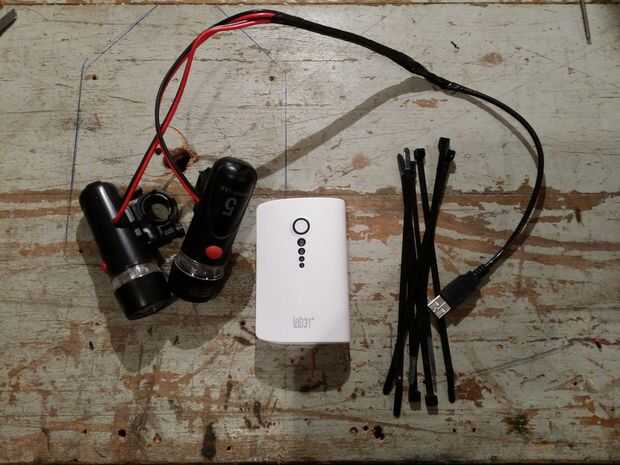 Sistema de Iluminación Frontal de bicicleta alimentado por USB (9 / 10 paso)