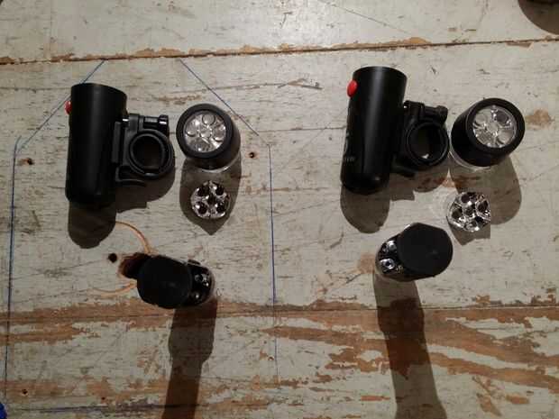alumbrado Quickie con intermitentes y freno claro de chatarra (sobre todo) / por partesPaso uno: reunir las piezas necesariasLuces LED MR-16Flasher de direccional LED2 x luces laterales del marcador LEDLuz Stop LED/de la cola2 interruptores de palanc