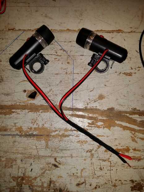 Paso 7: Corte los cables a la longitud correcta y soldarlos a las entradas de la batería en las lámparas, rojo en la positivo, negro negativo.
