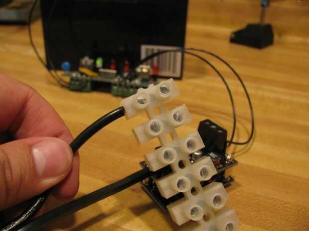 El cable negativo del LED tiene que ir en uno de los agujeros de la tira Terminal.