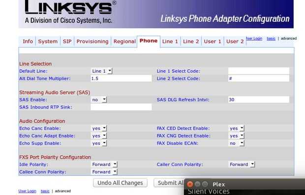 Así que mi SPA-1001 es conectado a mi router y configurado en line1 con CallCentric para llamadas de larga distancia baratas.