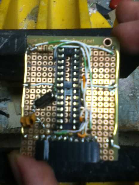 El cartucho alberga el juego procesador y memoria (ATmega) y comunica con el tellymate basado en los datos recibe de los controladores. El cartucho es esencialmente un muy mínimo perfboard Arduino sin el USB para conexión serie o su propia fuente de alimentación. El cartucho es la sección más difícil de la construcción y requiere que tengas conocimientos de soldadura y cómo gestionar correctamente los componentes electrónicos. Me encontré con varios problemas del cartucho debido sobre todo a una descuidada conexión entre el ATmega y el cristal de 16MHz.