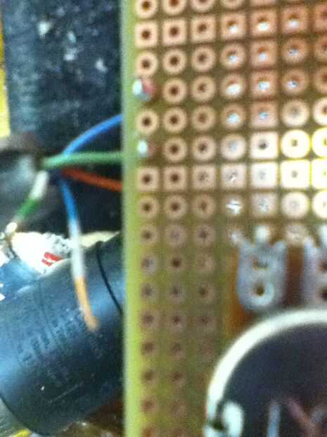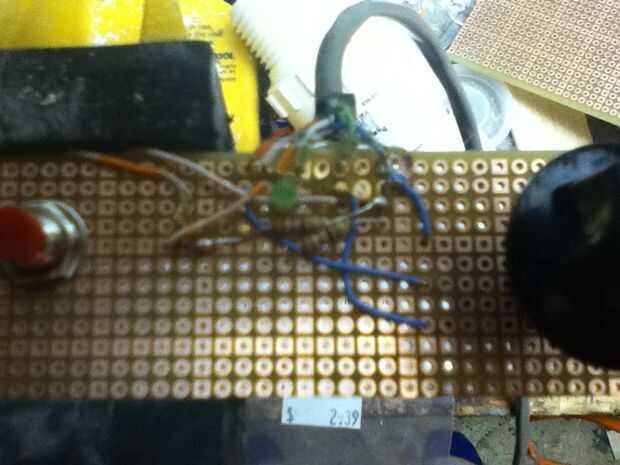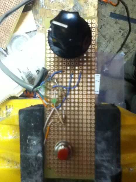 Para construir los controladores corte un pedazo de perfboard y taladrar dos agujeros en él para montar la olla y botón. A continuación adjunto el alambre y escribió que colores corresponden a lo que. Después de eso soldar todos los componentes en su lugar.