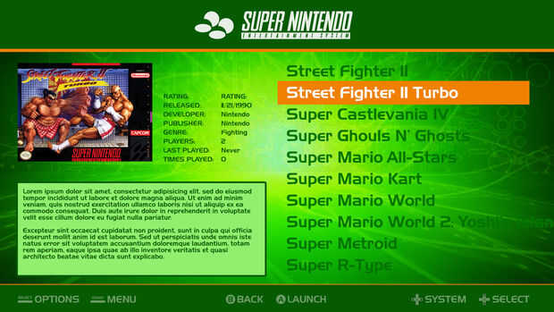 - Así, EmulationStation es bastante soso. Aloshi admite que es bastante básico y anima a la gente a crear sus propias pieles. Fui por delante y lo hizo.