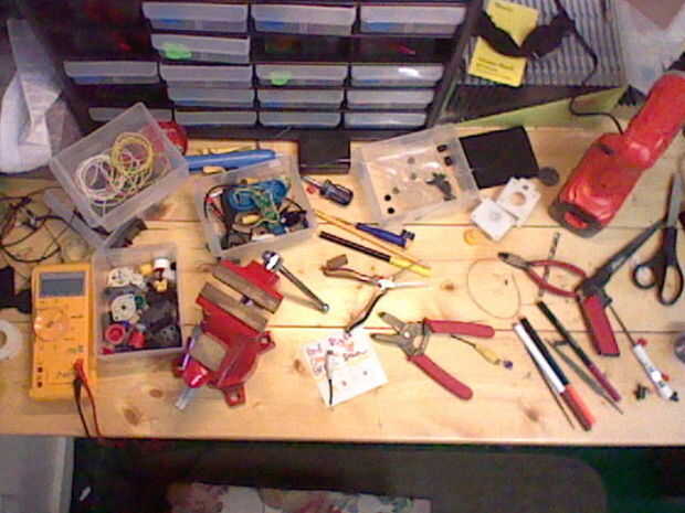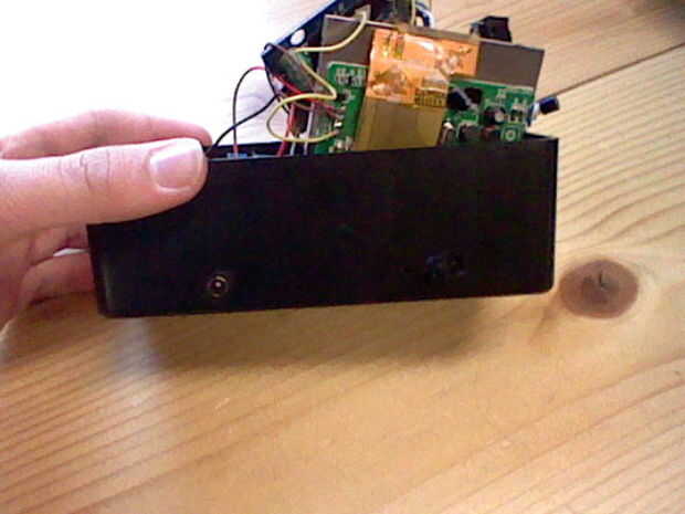 Ahora, limpiar su área. (Imagen 3) Salir de su taladro y poner un orificio para los auriculares, cargador, LED de encendido (si decides tener uno) y en general, interruptor para encenderlo. Mantenga éstos con pegamento caliente.