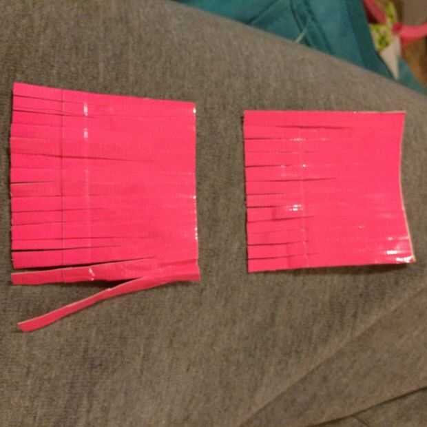 Siguiente la cubierta el lado pegajoso de este material colocando más tiras de cinta de pato en la parte superior el lado pegajoso encima de trozos de cinta.