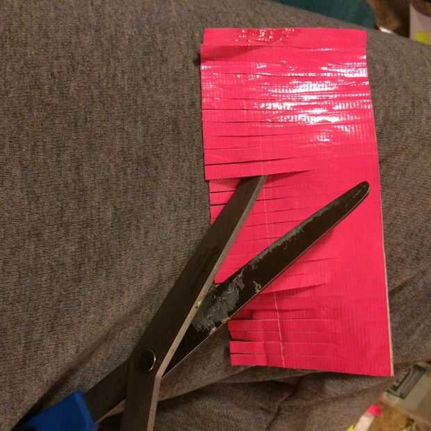 Al hacer la franja deja sobre un poco menos de media pulgada de material sin cortar cinta en un extremo de la anchura de la material de la cinta. (O parte de hacer este sin cortar del tamaño que desee su otro color de cinta pato que).
