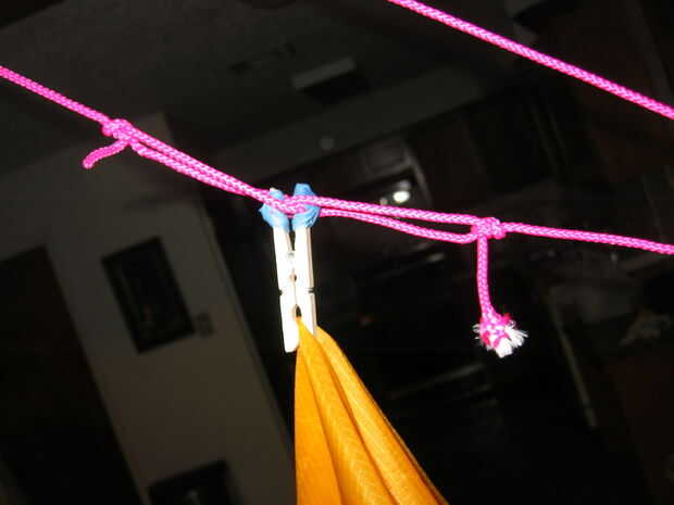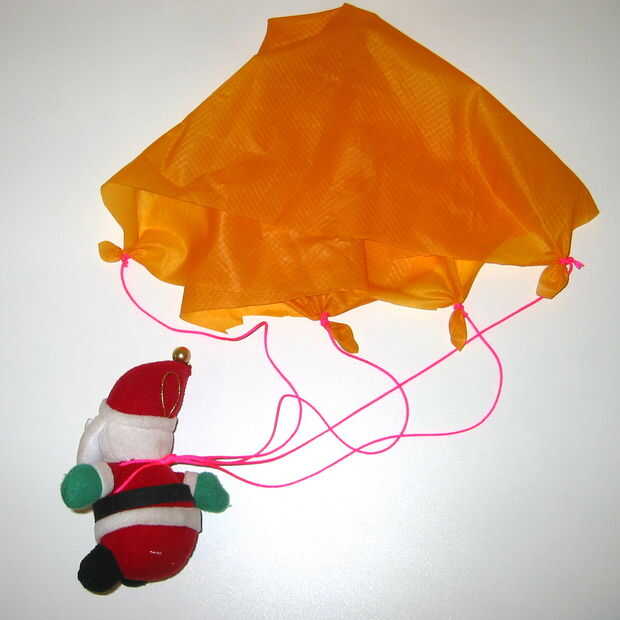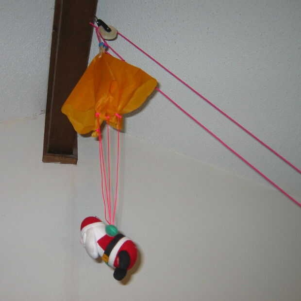 Solía hacer el juguete de "hombre del paracaídas" mucho cuando yo era un niño. Estaba visitando Danielle y Rhett. Él se inspiró para hacer un sistema de polea para soltar el paracaídas similares a uno que había visto en un Museo de la ciencia con su muchachito Rhett.