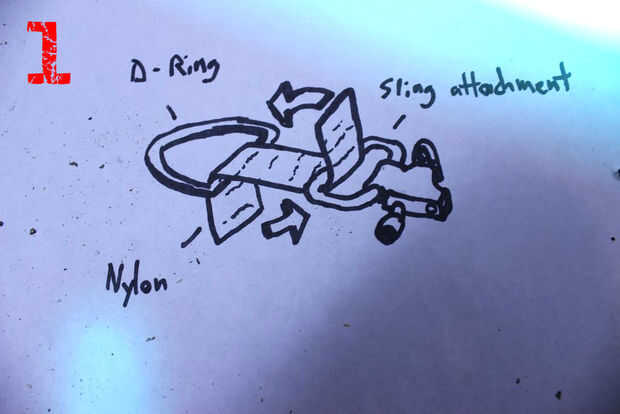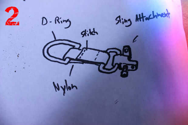 En primer lugar, poner el nylon a través de los sujetadores como se muestra en el cuadro 1. A continuación, doblar ambos lados entre sí, pero va formas opuestos (2). Una vez que se dobla un lado, lo cose y luego el otro. Creo que es mejor para asegurarse de que la superposición de dos lados, de esa manera una vez que tenga los lados individuales cosidos, puede ejecutar hilo extra entre todos 3 tiras, lo que es mucho más fuerte y utilizará menos hilo. Puedes ver lo que quiero decir en el cuadro 2 y 3.