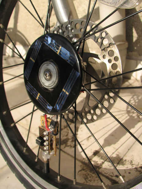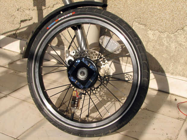 Se asegura a la válvula de aire del neumático. El cable entre el panel y el circuito tiene una toma que más protege el circuito y en el caso de un pinchazo se puede desconectar fácilmente.