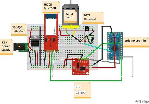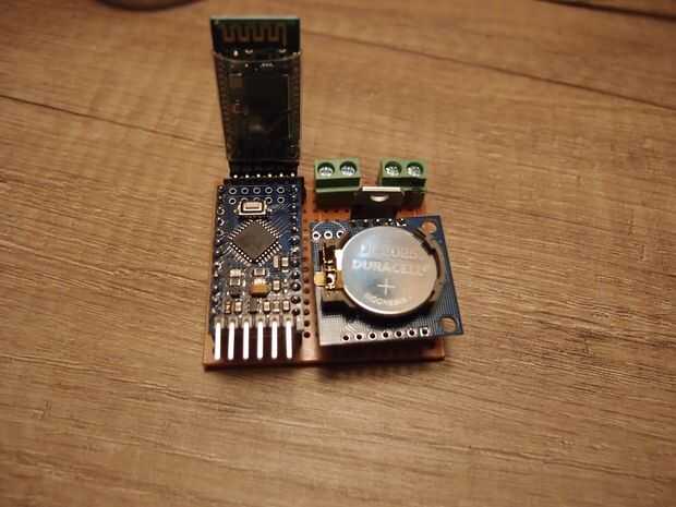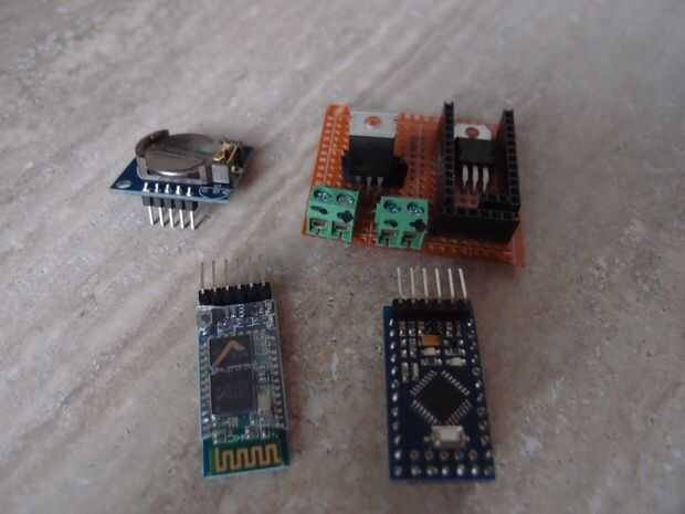 La placa tendrá el microcontrolador, la comunicación de bluetooth, el módulo RTC, un tranzistor energía con un diodo de protección y un rezistor pequeño, cables conectores, un regulador de 5V.