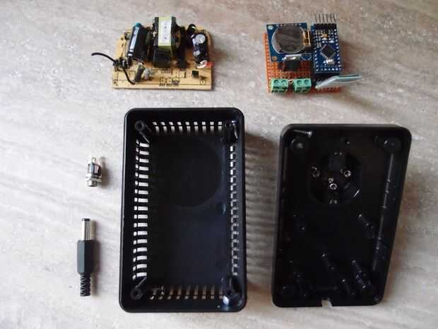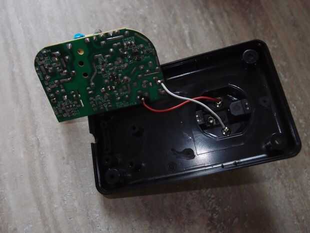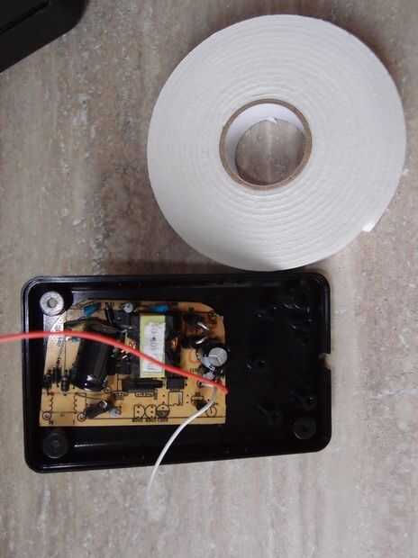 3. luego la alimentación viva y conductores neutros deben soldarse a los conductores vivo y neutro de caja. Después de que soldar dos cables rojo y blanco para la salida de 12 v positivo y negativo, estos cables se pondrán al derecha KF301 - 2 conector en nuestra PCB. Después de que el uso de dos pedazos de palo de cinta adhesiva doble el poder suministro de pcb en la parte posterior de la caja de plástico.