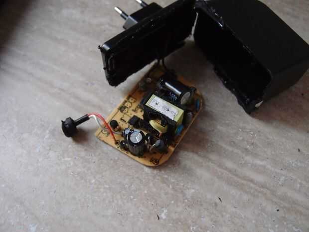 1. cortar el cargador de 12 V a 2, he usado una herramienta dremel para cortar y luego con cuidado extraer el PCB con los componentes dentro de. Debe ser cuidado de no dañar los componentes en el interior cuando usted corta. Después de cortar cortar los 4 cables con el cortador de cable y desoldar los cables.