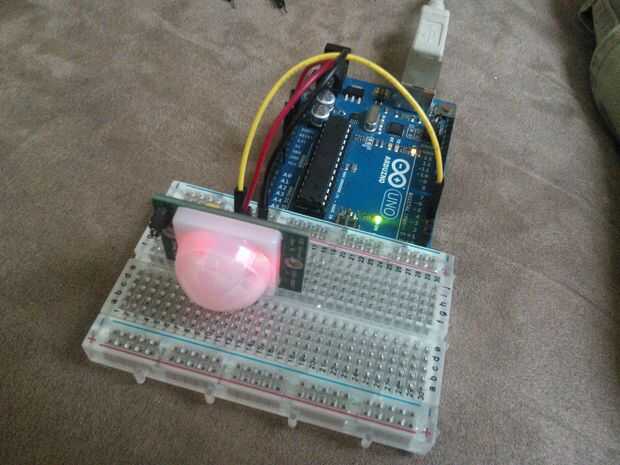 Es un pequeño dispositivo simple que indica cuando se detecta movimiento. Cuando hay movimiento, la línea de señal va alta, mientras que es baja cuando todo está tranquilo. Integración de un PIR es bastante simple. Es prácticamente el mismo concepto como botones, pero en lugar de físicamente presionando un botón, los interruptores PIR tiene salida por consiguiente (alta o baja) cuando hay o no se presente movimiento.