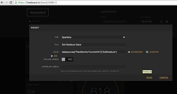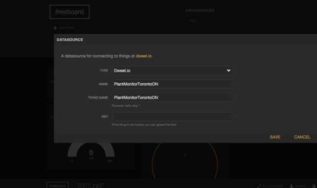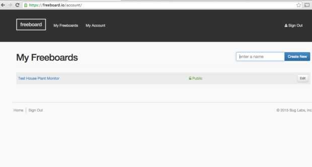 Ahora para crear algunas placas impresionante guión basados en feed url en otras anteriores de dweet.io, crea una cuenta en https://freeboard.io