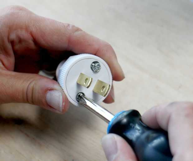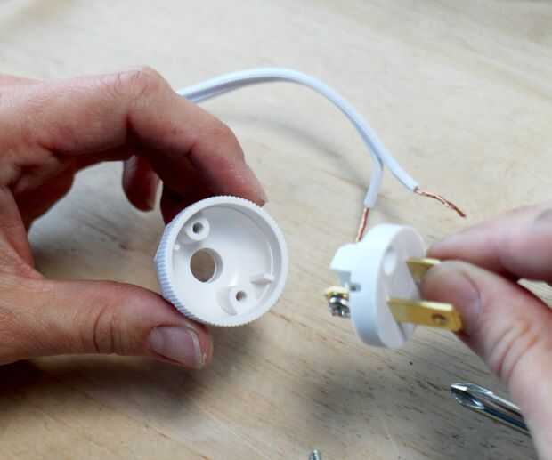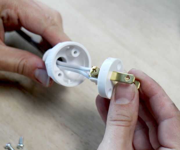 Conectar el enchufe: liso / 'hot' al tornillo de latón y proveyó de costillas / neutral al tornillo de níquel.