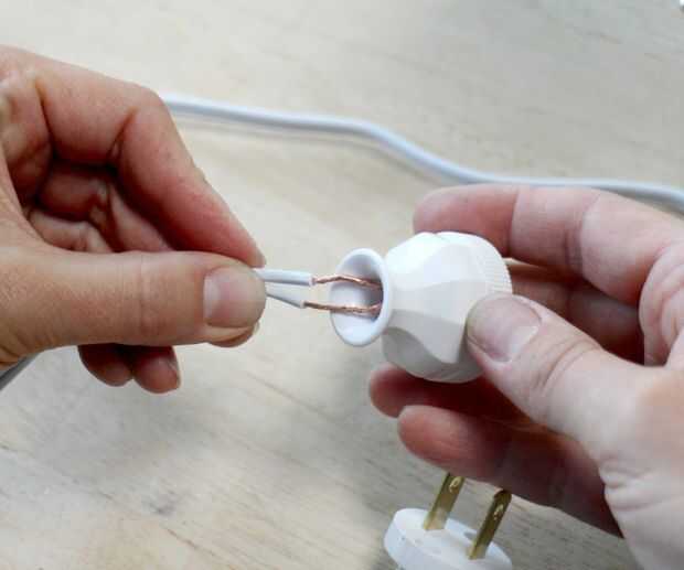 Tira y retuerza los extremos del cable de la lámpara.