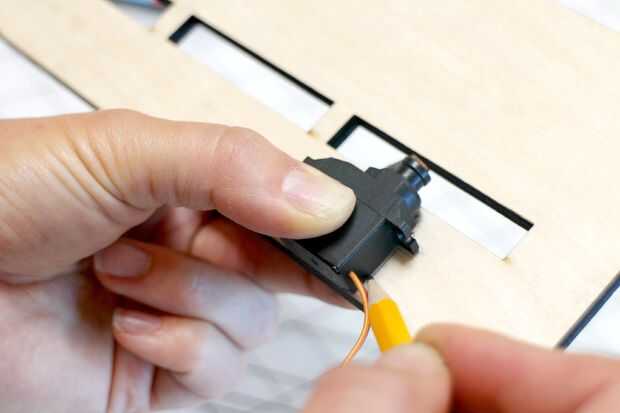 Una vez haya encontrado la posición correcta, trace el servo a la madera para que usted sepa exactamente a dónde pegarla.