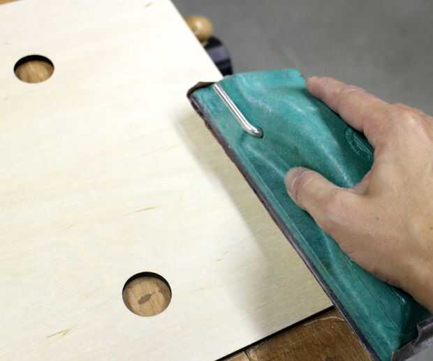 Poner una lija de 180 en una lijadora de Palma y la arena suavemente ambos lados de los bordes largos del panel posterior. Esto le permitirá deslizar en lugar de más fácil.