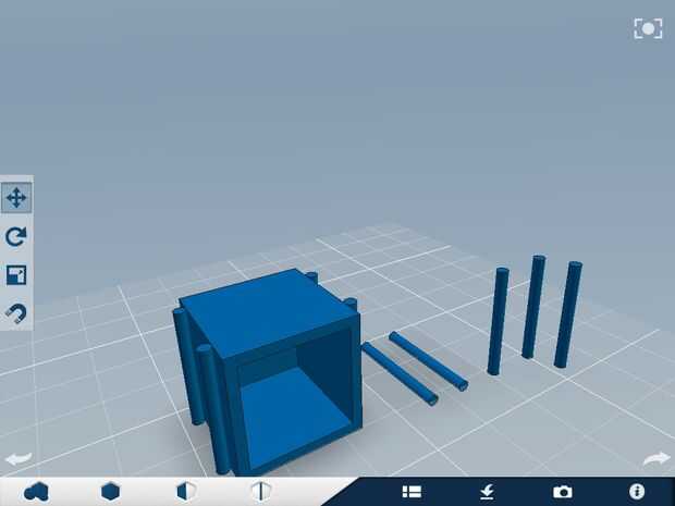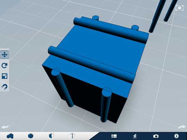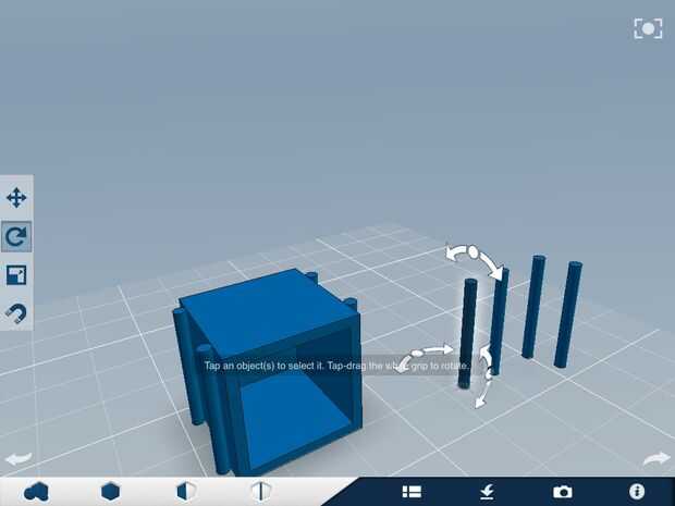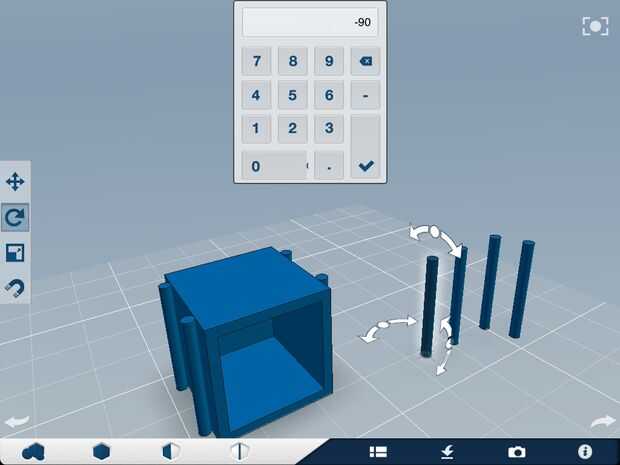 3) Seleccione la herramienta Rotar en la barra de herramientas. Pulse sobre uno de sus cilindros extras. Toque las flechas de rotación en la parte superior del cilindro, entra -90 como valor. Debe estar orientado como en la figura 5