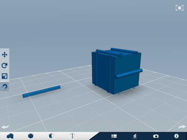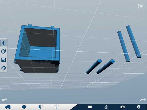 7) Inserte uno de los cilindros a la cara posterior de la caja. Bajar 3.